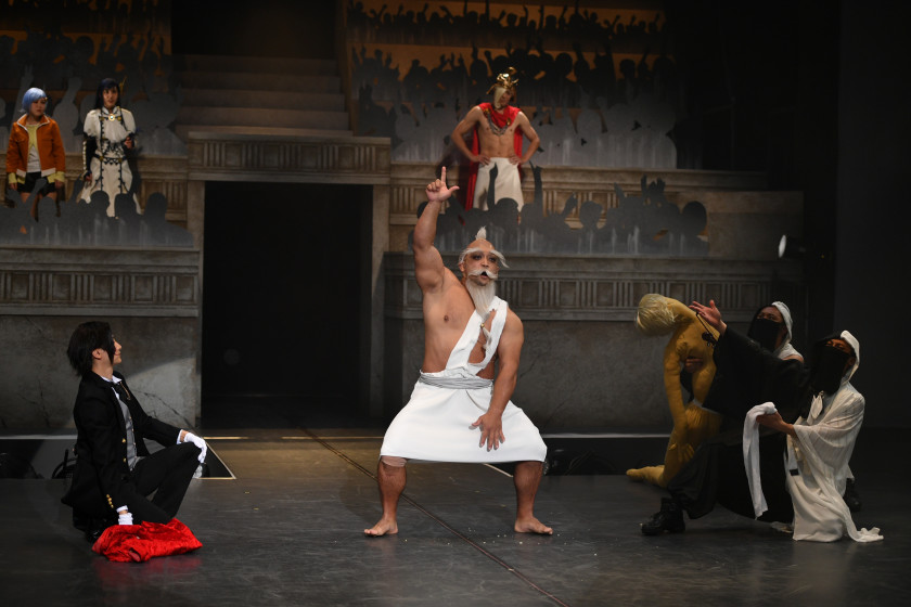 田上「私はお客さんに近い存在なので、舞台上と観客席を繋げられるように頑張ろうと使命感に燃えていたんですが、そんな意気込みなくとも、目の前で今まで見たことのないタイマンが繰り広げられるので、私は夢中で楽しんでいました。ただ稽古中に、やはりピースが欠けていると思っていました。観客が足りないと!私やゼウス様たちに、神側・人類側の応援する人たち、観客席がまだ足りない!と思っていたので、ようやく完成するというか、私たちの想いを共有できる皆様とこの作品を作れるのが楽しみです。幕が開くと全く違った感覚になると思うので楽しみにしています!どうぞ皆さま、この舞台を完成させにいらしてください!」
