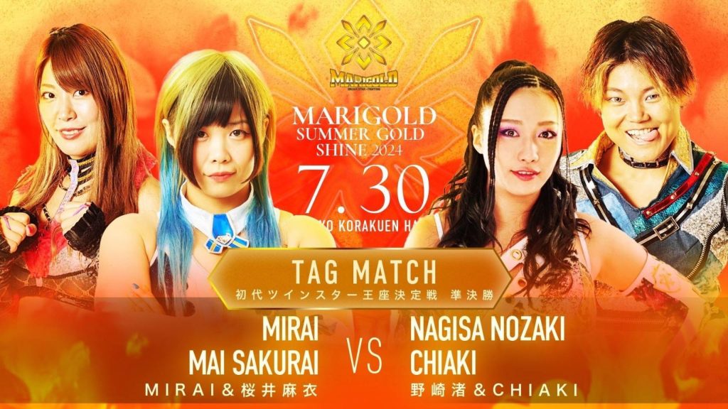 マリーゴールドのタッグ王座を決定する初代ツインスター王座決定トーナメントが7.30後楽園ホールで準決勝・決勝を行う。優勝を狙う「ミライサク」MIRAI&桜井麻衣の二人が神奈川県某所で緊急特訓を行った。そこに現れたのは真夏のトーナメント制覇といえばこの人、”夏男”でもある“黒のカリスマ”蝶野正洋だった。