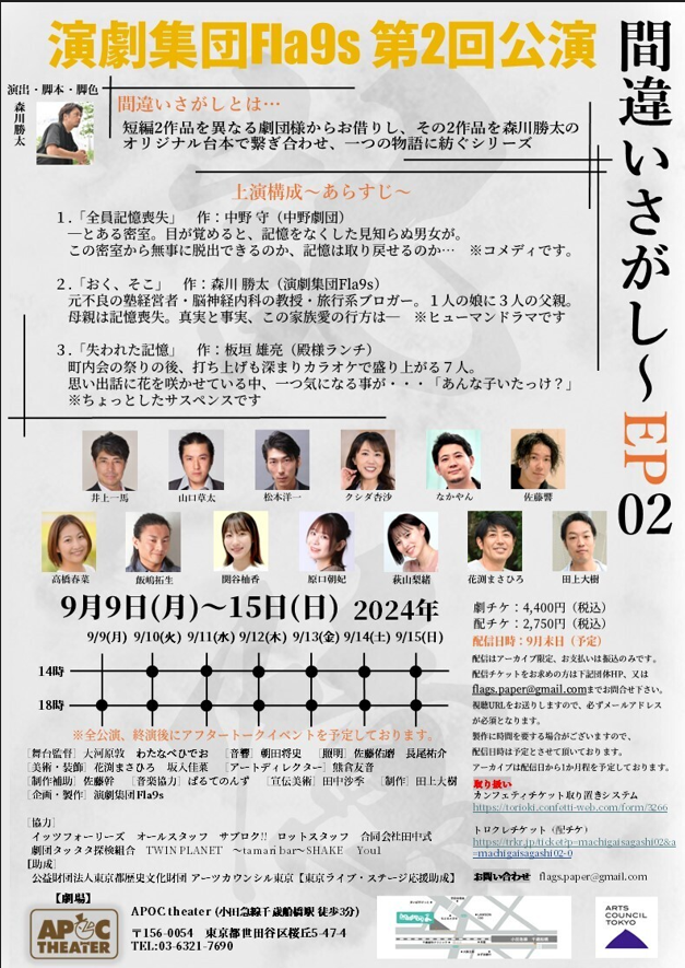 演劇ファンも、初めて劇場で観劇される方も必見!! 【デートコースに演劇を】 をスローガンに、3名の役者を中心とする演劇集団Fla9sのプロデュース公演第二弾のご紹介です。