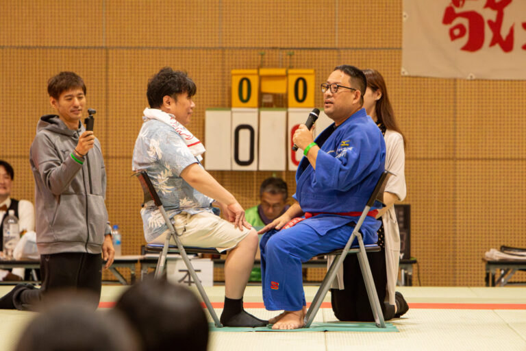 選手や審判団に技をかけ、皆さんコロコロと楽しそうに転がっていました!