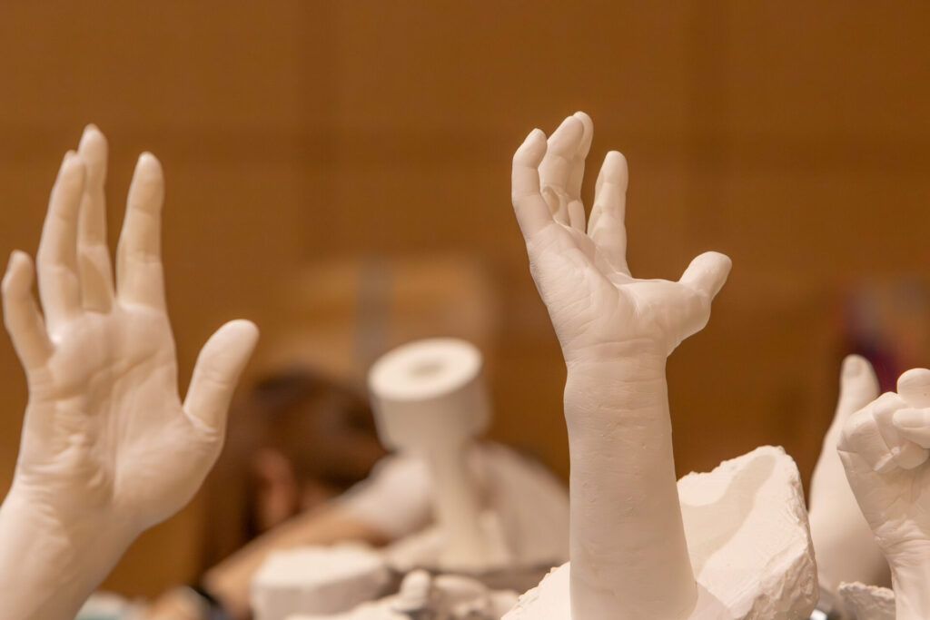 造形作家のあや先生が、武術家の先生方の体の一部を象ったアート作品を作成・展示してくださいました。