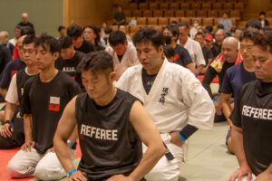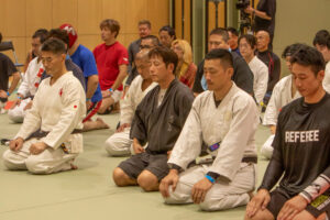今年の6月14日に亡くなられた、2018年の鹿児島大会旗揚げから第5回敬天愛人練武大会まで審判長を務めていただいた鬼木貴典さんに黙とうを捧げました。