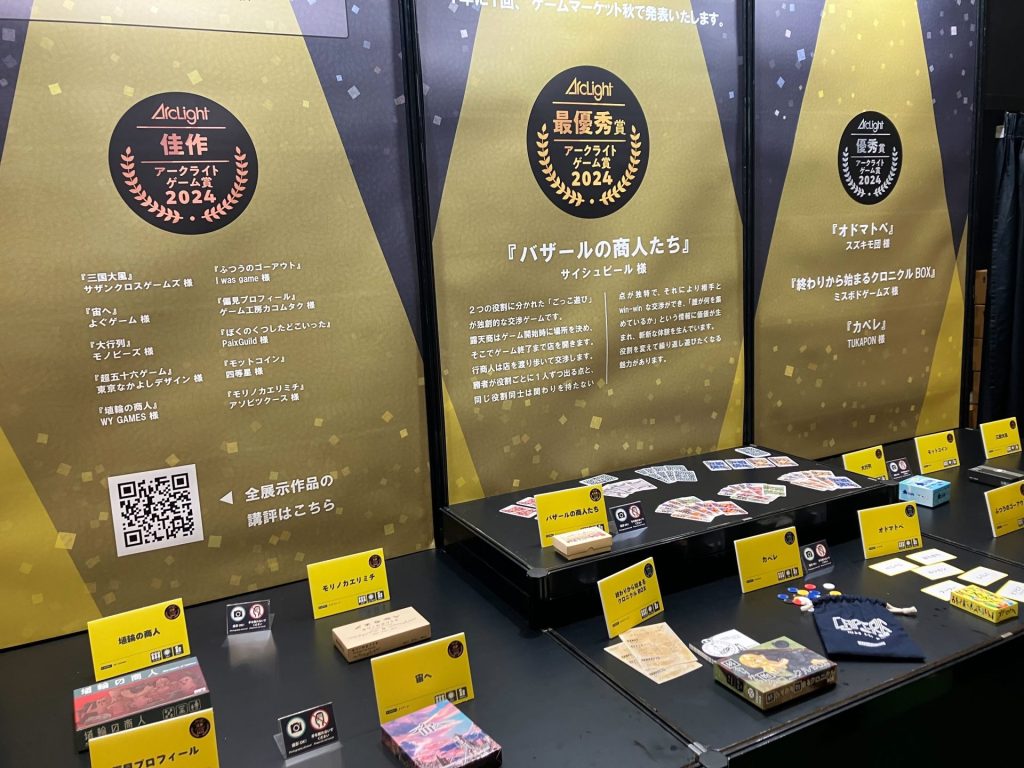 ほかにも「ゲームマーケットアワード」という毎年ゲームマーケットで発表されたゲームの中で、最も優れた作品に贈られる賞の発表などもございました。購入するゲームの参考にもなりますね!