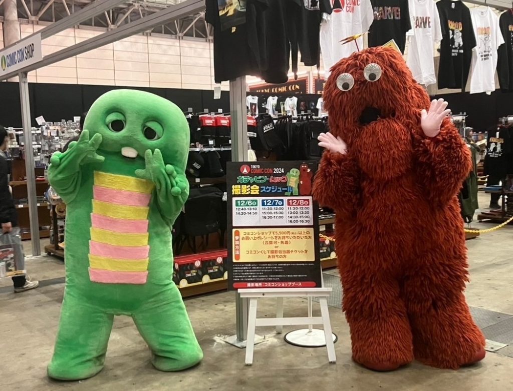 コミコンのオフィシャルショップ前にはガチャピンとムックがいました!
