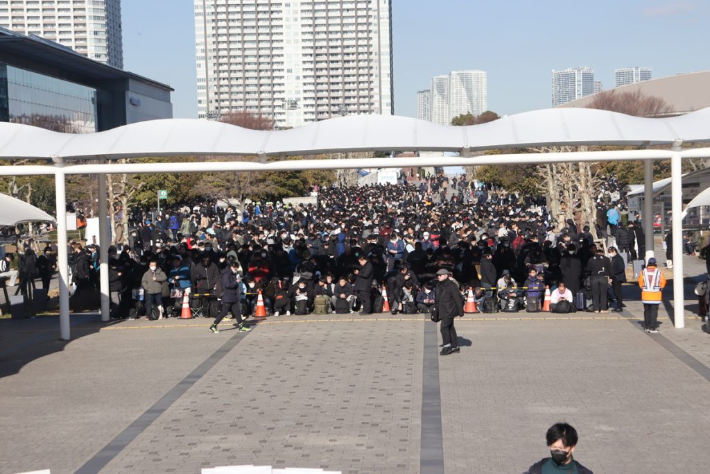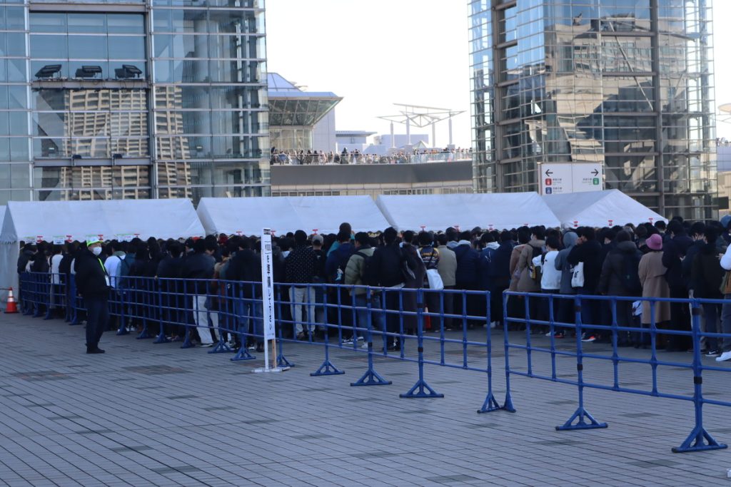 ↑早朝から入場を待つ一般参加者たち。国際展示場駅から長蛇の列が形成された
