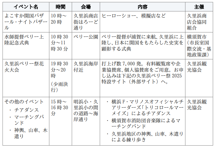 ・ 詳細は久里浜ペリー祭 2025 特設サイト(外部サイト)をご覧ください。