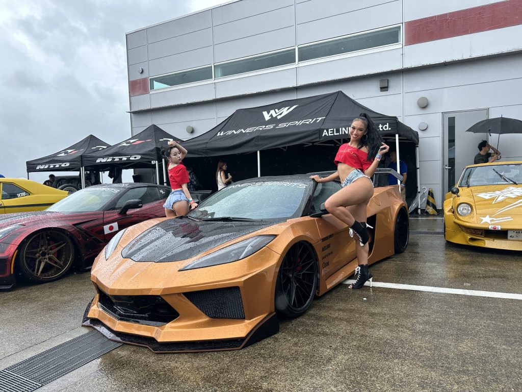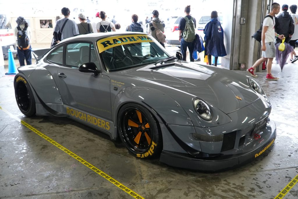 フィールドにはアメ車、カスタムカー、働く車からスーパーカーまで幅広いジャンルの車たちが見渡せないほどに展示され、オーナーとお客さまがひこやかに、時に熱く語り合う姿が見られた。この雨が余計に一体感を高めた印象。