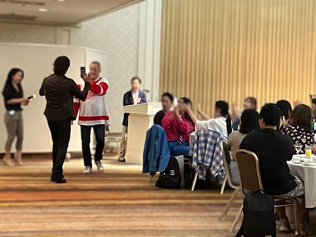 2人が参加者とコミュニケーションを取ると、喜びと驚きの声が次々と上がります。ジョン氏は肩を組んでくれたり、デイブ氏はおどけたポーズを取ってくれたりと、まるで家族のような距離感でした。