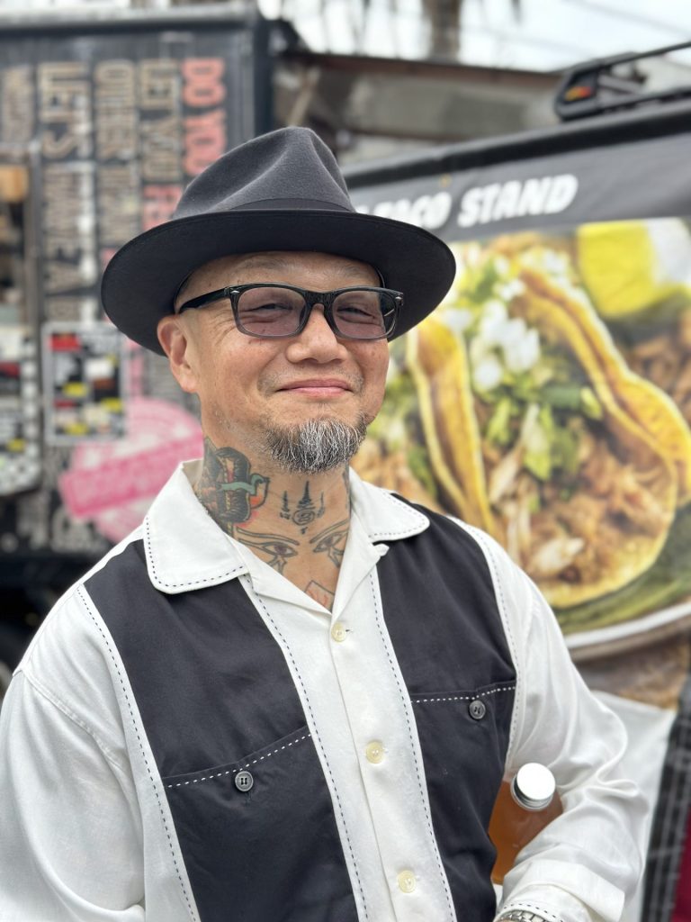 帰り際、ようやくお昼のタコスを食べようとしてる彫しげさんにご挨拶。充実した疲れというかイイ笑顔で送り出してくれました。