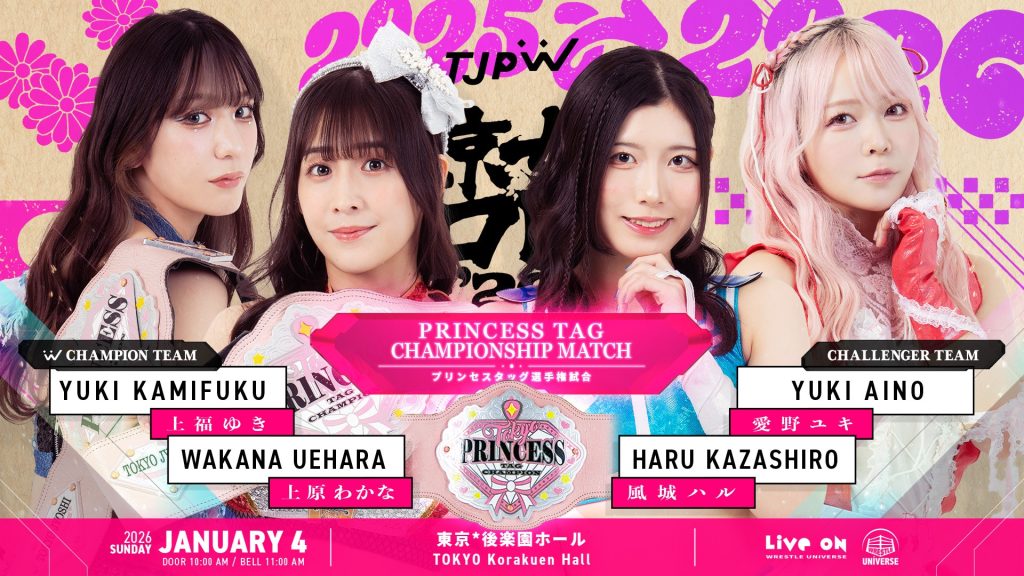 風城)はい! 二度目のタイトル挑戦ではあるんですけど、前哨戦があって、調印式があって、みたいな段階を踏んでのタイトルマッチっていうのが初めてなんです。それが1.4後楽園ホールっていうすごい大事な日に、タッグのタイトルマッチができることをすごく光栄に思ってます。相手も上原わかなさんと上福ゆきさん、二人とも戦うことの方が多いんです。でもベルトを持ってから二人は私達よりもっともっと輝いてるように見えるし、タッグとしての力もどんどん高まってると思います。私と愛野ユキさんは組みましょうって言ってからそれこそ2,3週間ぐらいしか経ってないけど、絆としては二人を超せると思っています。私はまだまだ全然未熟だけど、自分の力を信じてユキさんの力も信じて、二人で絶対にタッグタイトルを獲って、ベルトを斜め掛けします!