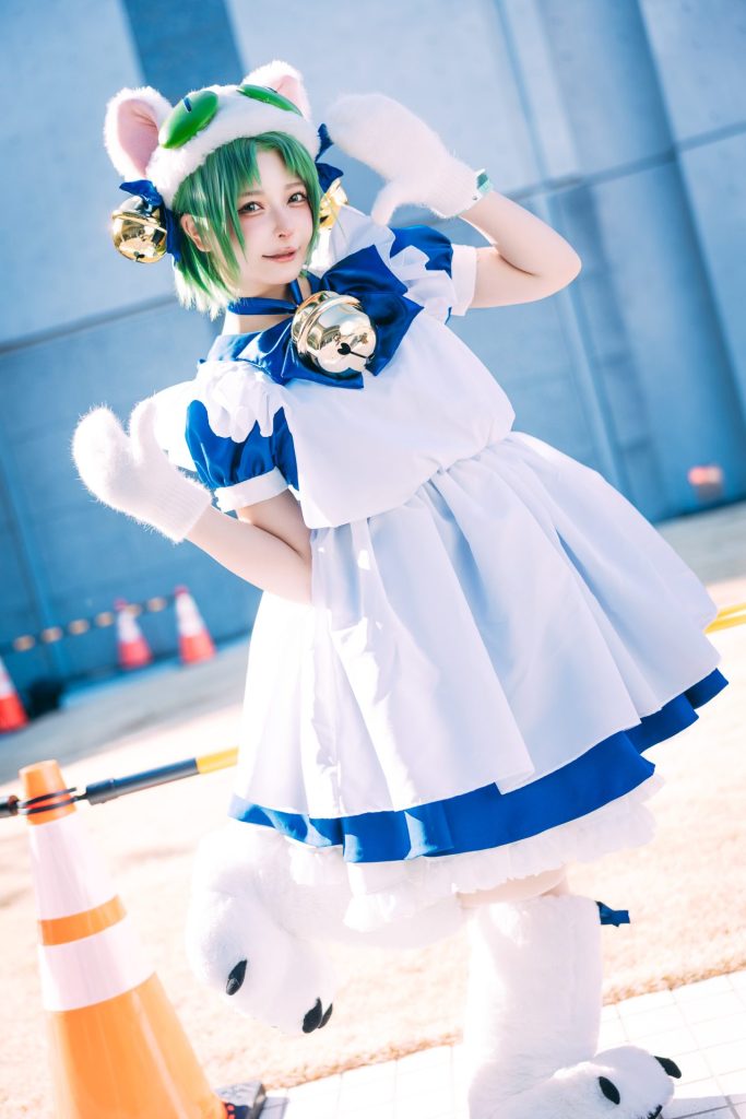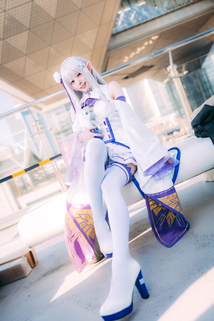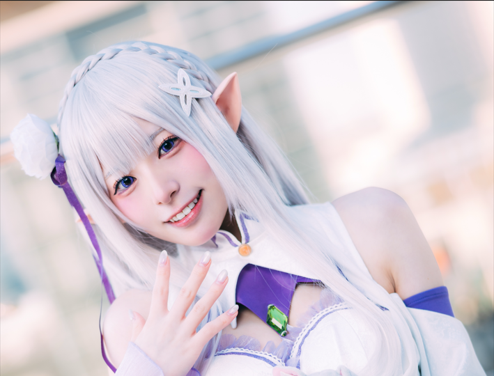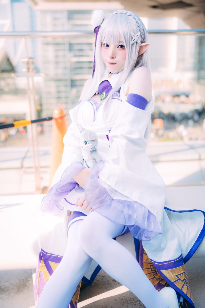 エミリアのコスプレをするにあたり、アニメ設定よりもディテールアップした衣装を作成したという名前はまだない。さん。そこはかとなく漂う高級感がポイントだ!