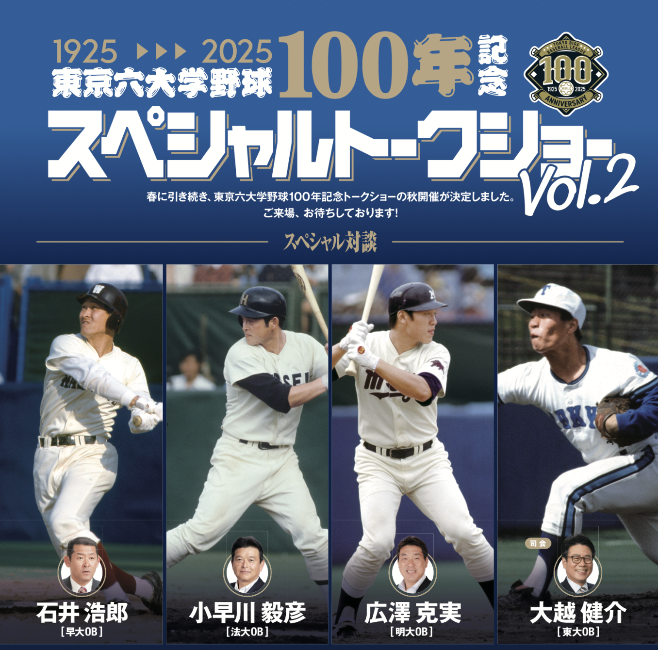 『東京六大学野球100年記念スペシャルトークショーvol.2』を2025年9月6日(土)に開催決定!「チケットペイ」にて申し込み受付開始!